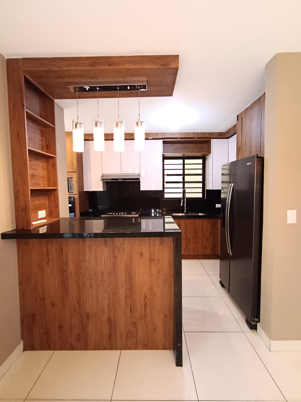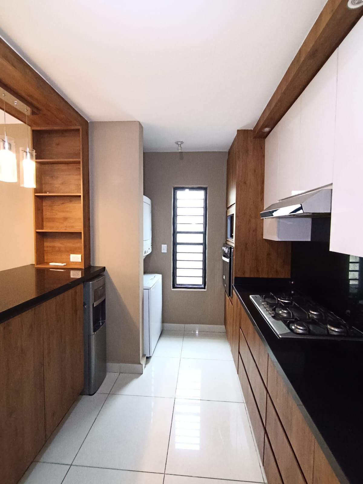 -Cocina integral (parrilla, campana, refrigerador, alacena, microondas, horno y dispensador de agua).
